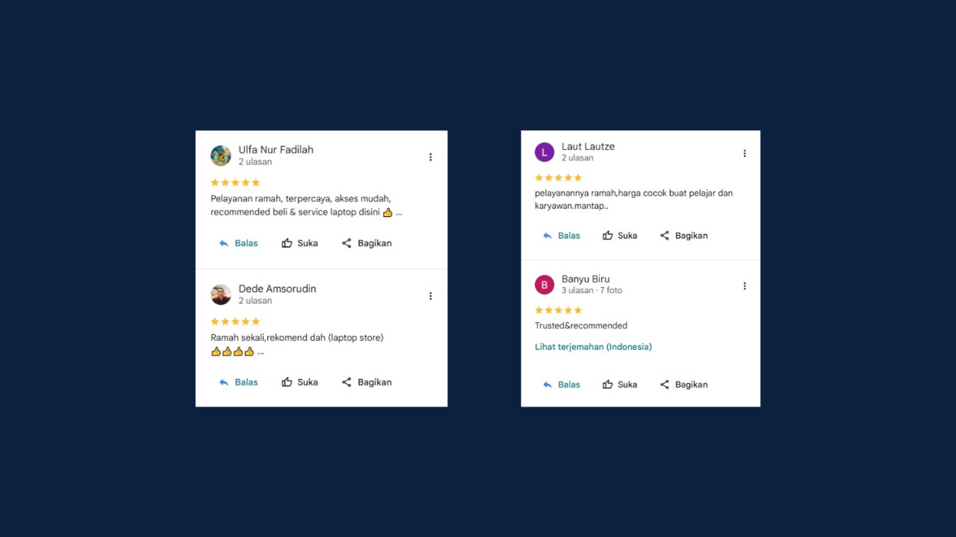 Kami melakukan factory reset menyeluruh untuk memastikan seluruh data pribadi Anda terhapus permanen sebelum laptop berpindah tangan.